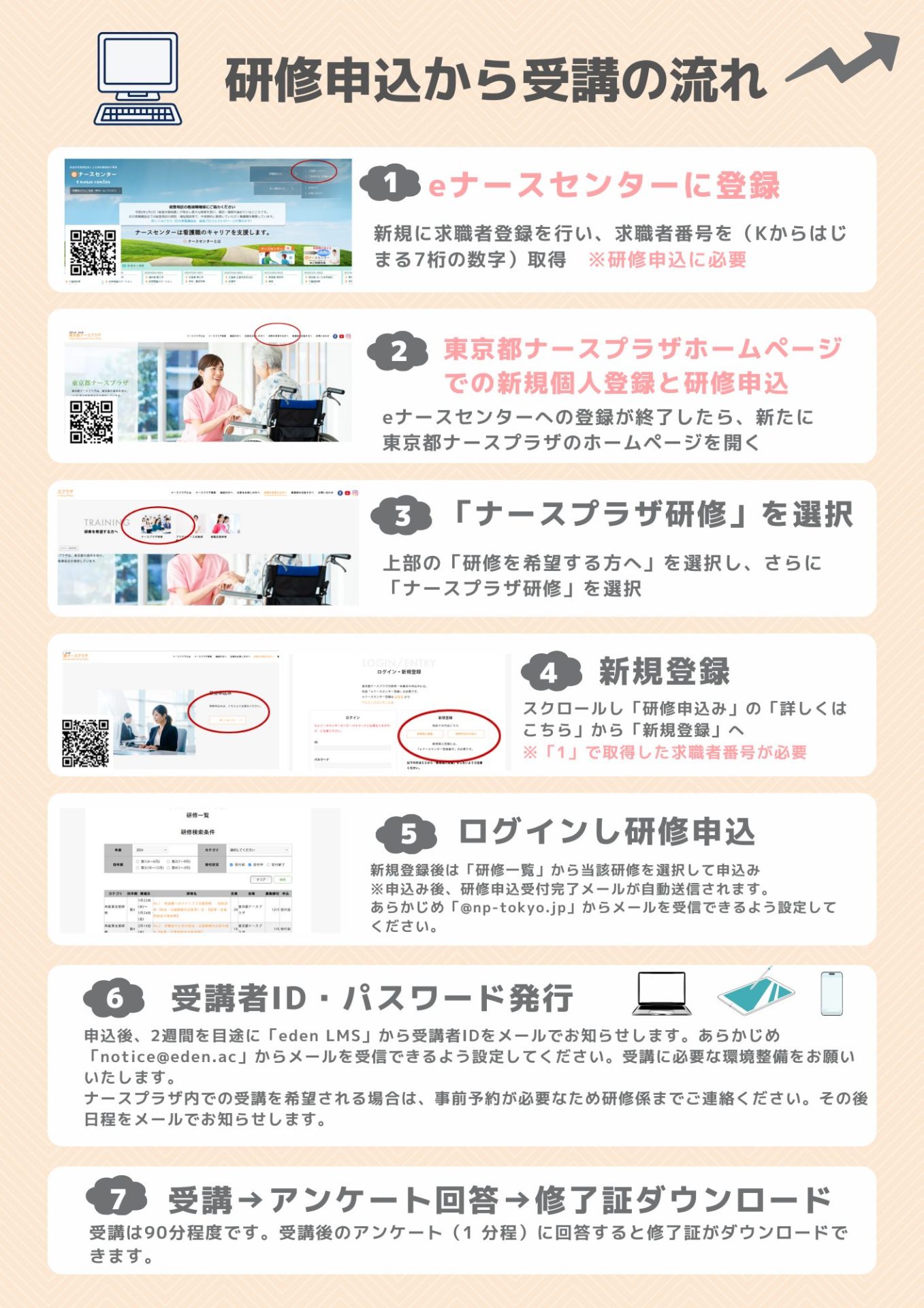 ナースプラザ内での受講を希望される場合は、事前予約が必要なため研修係(03-6304-2077)までご連絡ください。