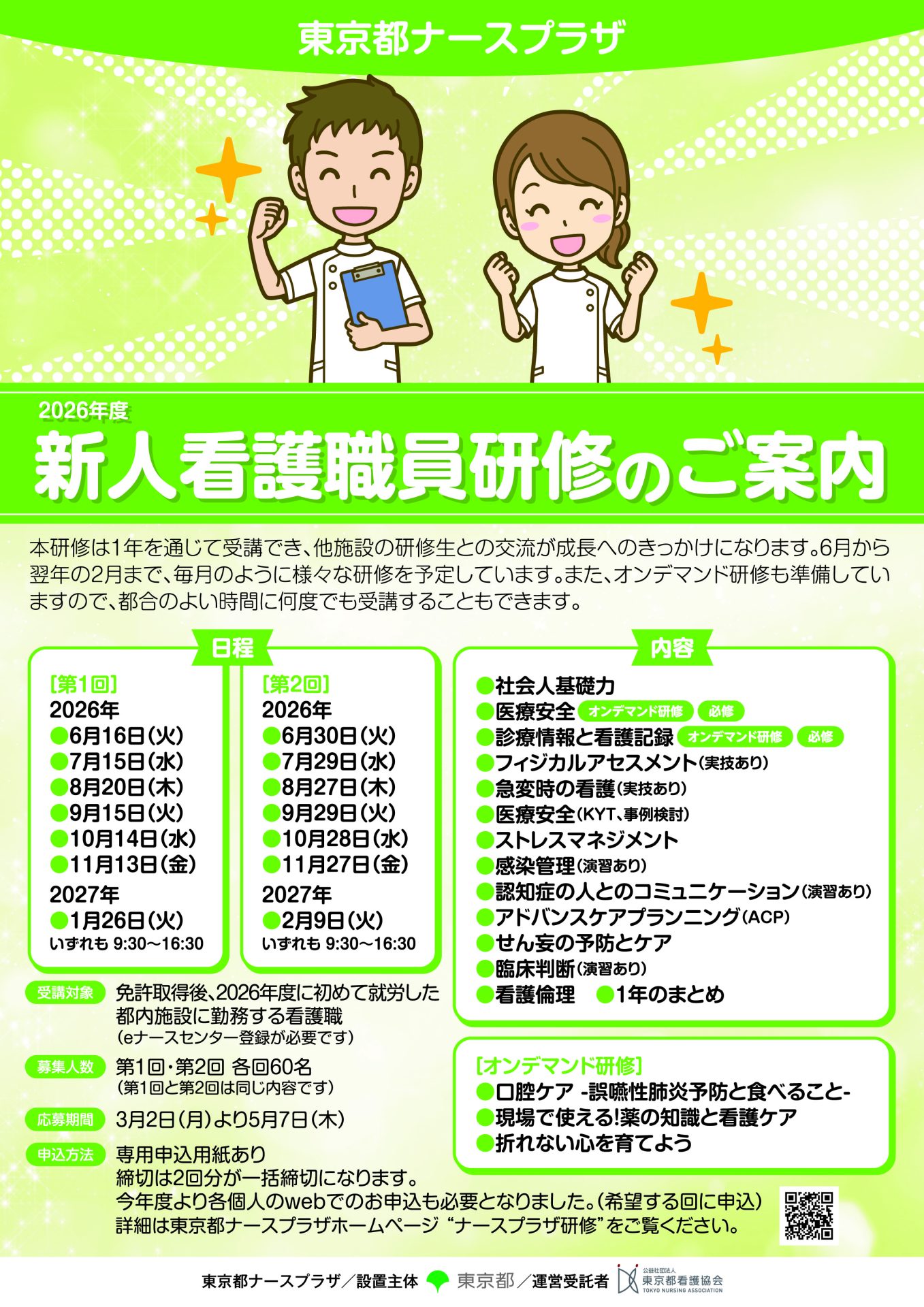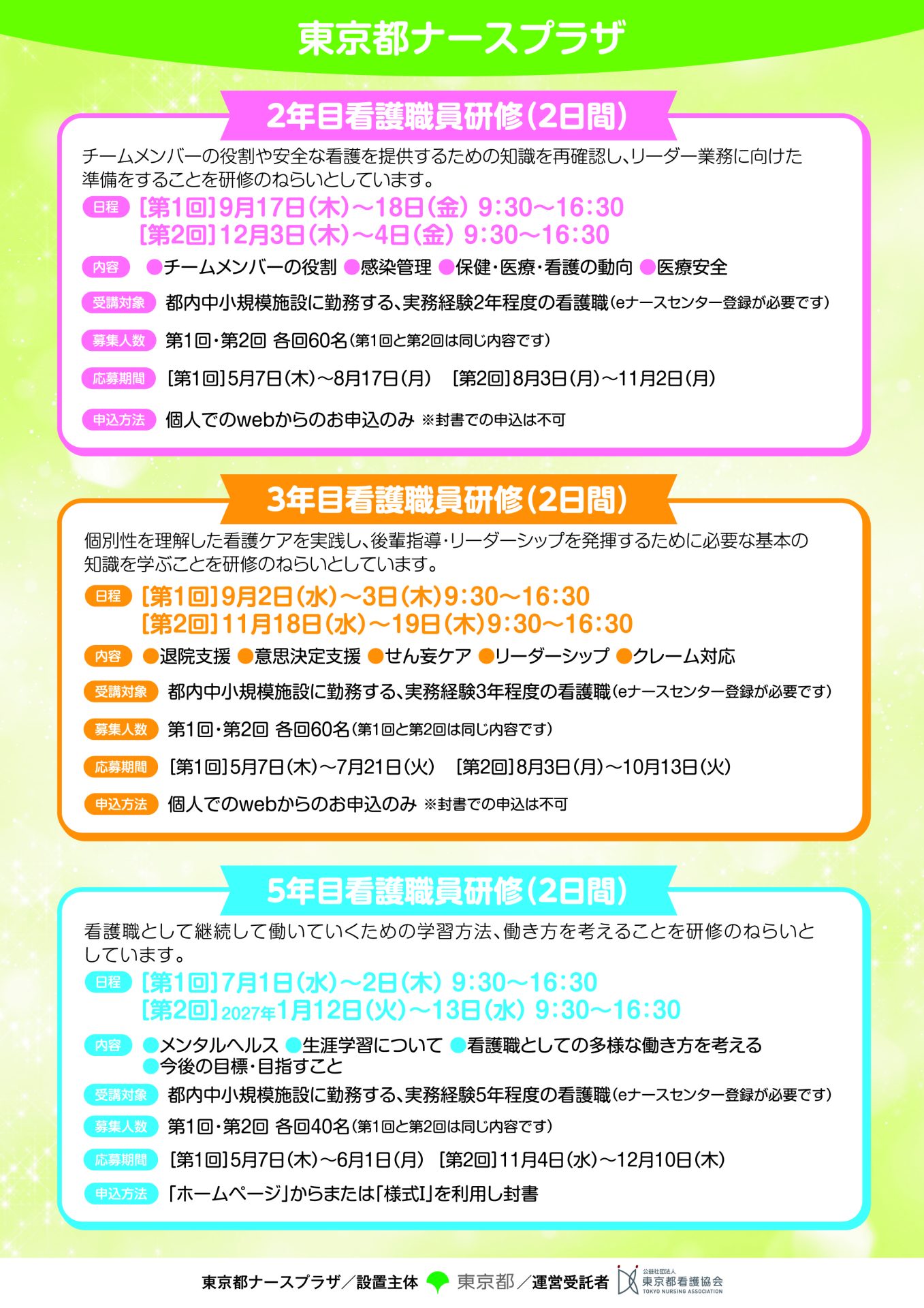 ・東京都ナースプラザ 研修係 TEL:03-6304-2077(研修係直通 平日 9:00~17:00) MAIL:お問い合わせフォームはこちら