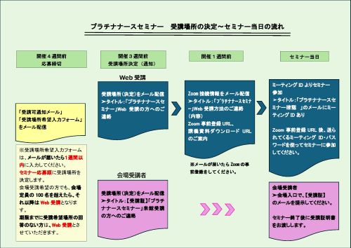フォームの回答に基づいて、セミナー応募順に受講場所を決定し、メールでご連絡します。